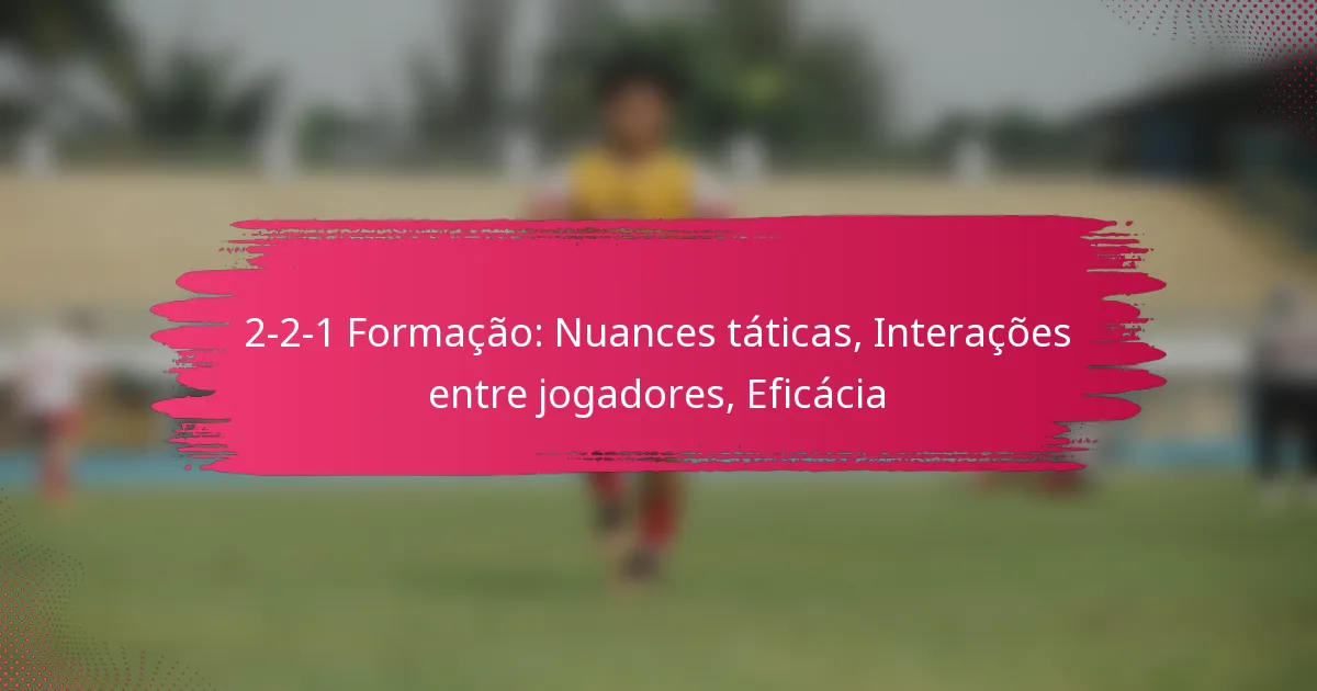 A formação 2-2-1 é um arranjo tático que apresenta dois defensores, dois médios e um avançado, concebido para criar um equilíbrio entre defesa e ataque. Esta estrutura não só facilita o controlo eficaz da bola e o jogo de transição, mas também melhora a gestão do espaço, permitindo que as equipas adaptem as suas estratégias contra diferentes adversários. Compreender os papéis distintos e as interações dos jogadores dentro desta formação é essencial para otimizar a sua eficácia em vários cenários de jogo.